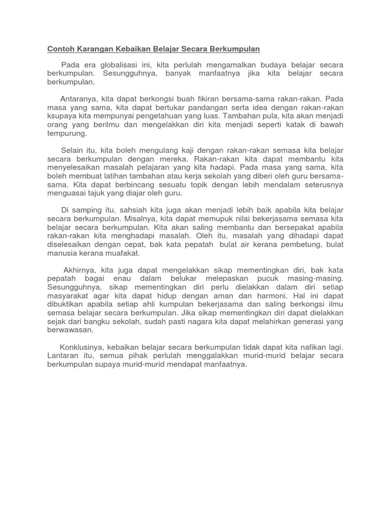 Contoh Karangan Kerja Rumah Harus Diharamkan